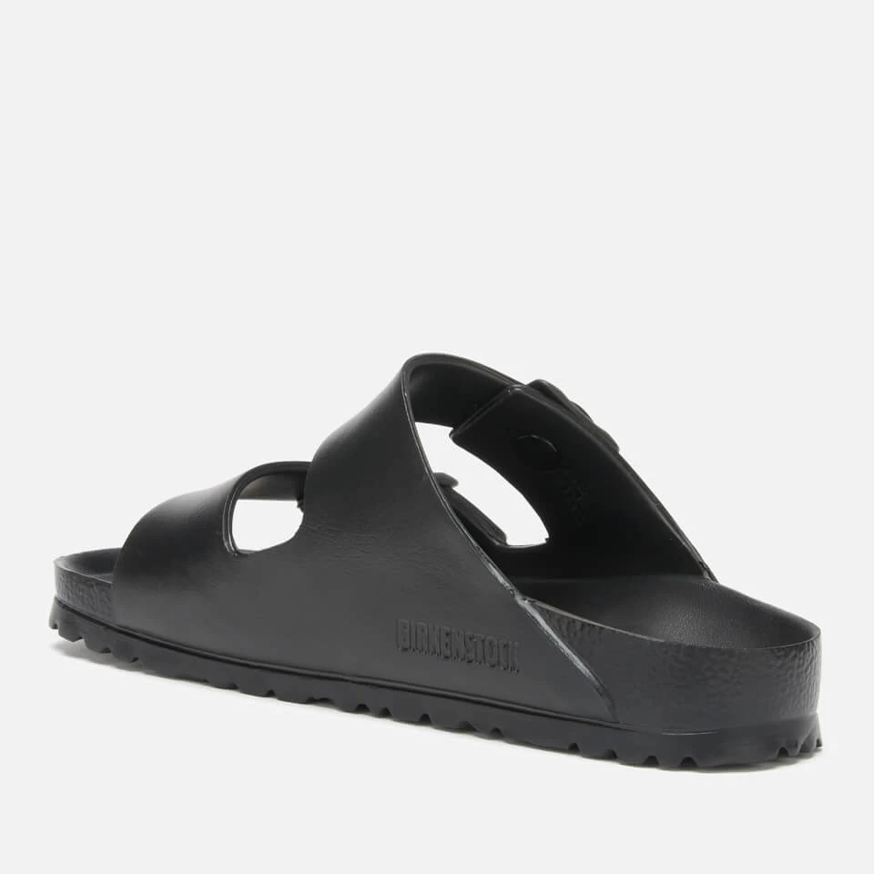 Women’s ‘Arizona’ black slim fit double strap sandals from Birkenstock. Crafted from lightweight EVA, the durable sandals feature buckle adjustable straps to fine tune the width. The shock-absorbing EVA construction is odour-resistant, while the cushioned soles offer both comfort and support. Designed to offer arch support, the sandals are finished with a moulded footbed and a heel cup.