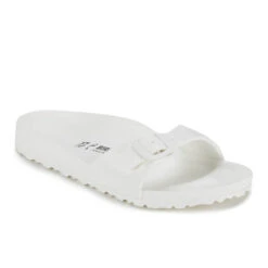 Birkenstock’s Madrid sandals have a classic single strap upper, made from waterproof EVA in a monochrome white colour. The lightweight design has a contoured EVA footbed for increased arch support and a cushioned sole for long-lasting comfort. Topped with a branded buckle fastening for a secure fit.