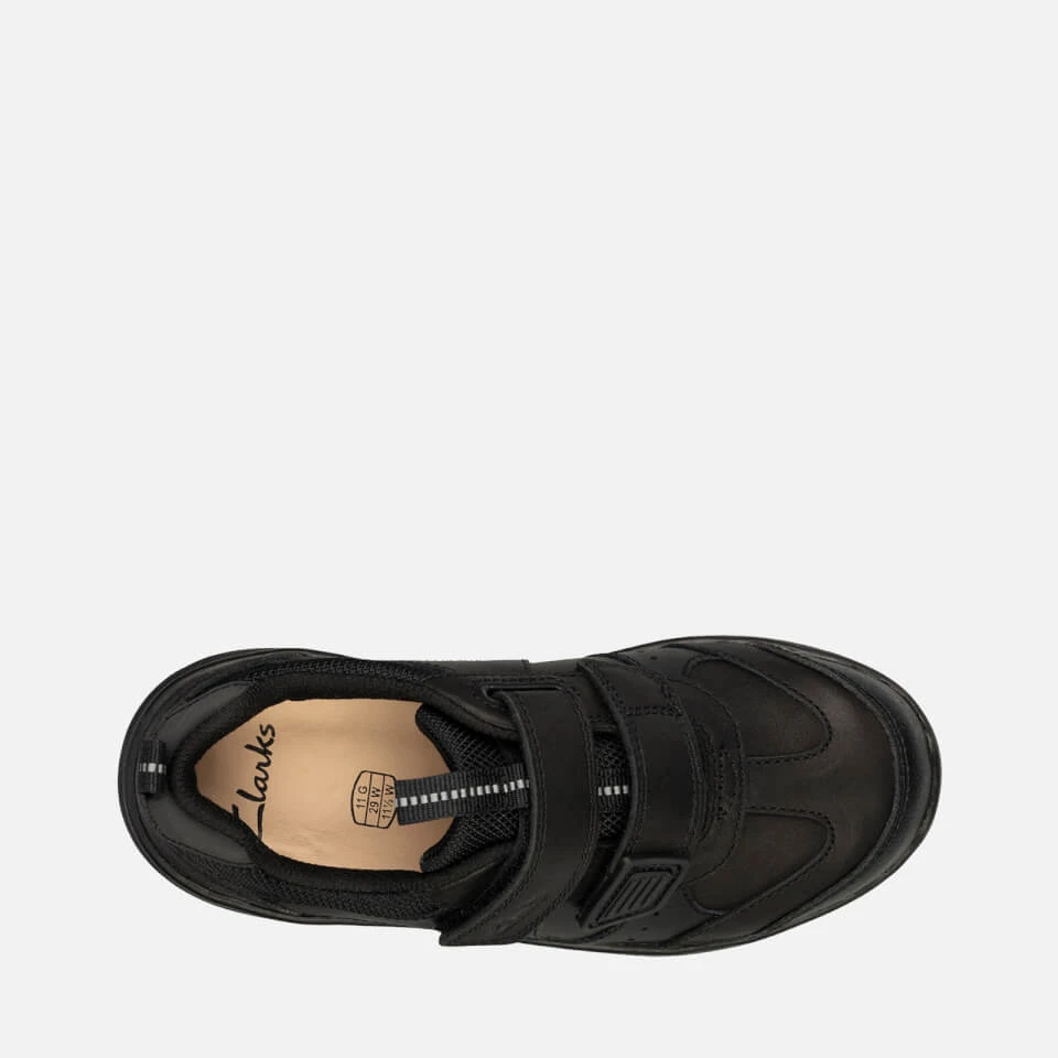 Clarks’ Scooter Run school shoes have durable and comfy black leather uppers. A chunky bumper toe and flexible rubber soles offer long-lasting comfort. Lined with breathable Agion® mesh to keep feet feeling fresh.