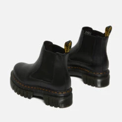 A high-octane take on Dr Martens’ signature silhouette, the Audrick Chelsea boot is crafted from nappa leather with a statement platform lug sole. True to form, the design is finished with a branded pull tab and yellow stitching.