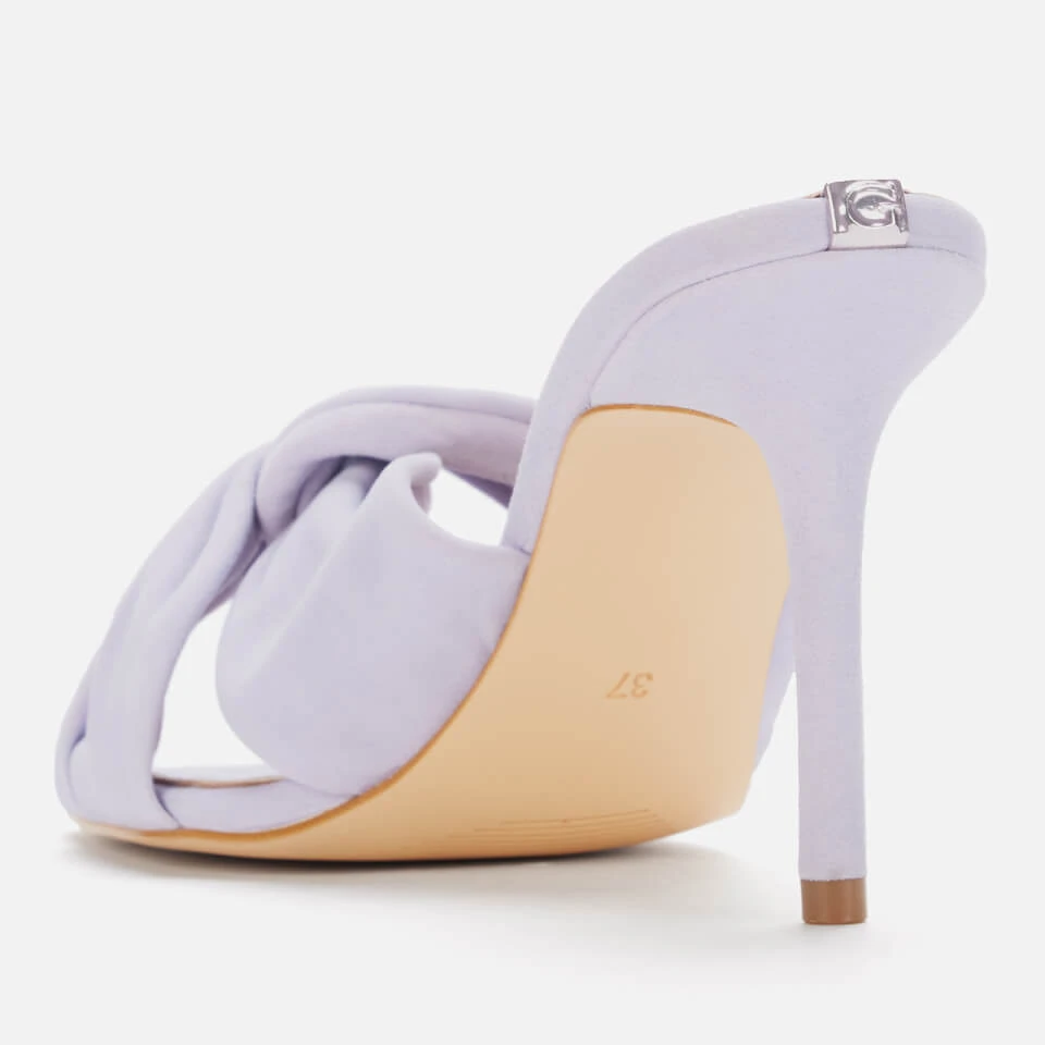 Guess’ Daiva heeled mules are defined by their artfully twisted vamp. This pair is made from soft suede and accented with the brand’s gold-tone ‘G’ plaque at the back. Show them off with cropped cuffs.