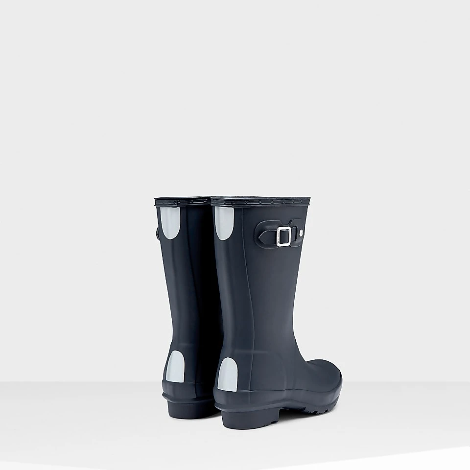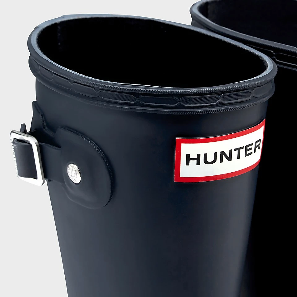 - Vegan, waterproof, matte finish, comfortable lining, Hunter Original tread pattern, logo badge