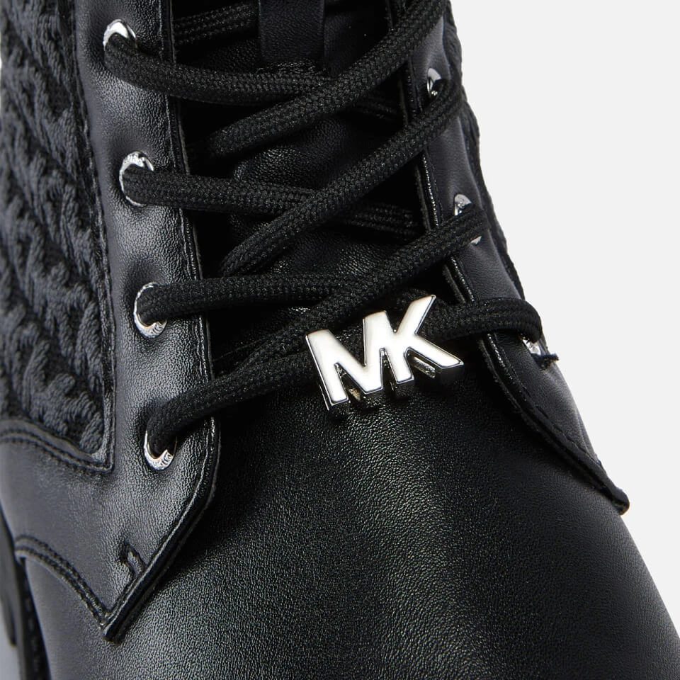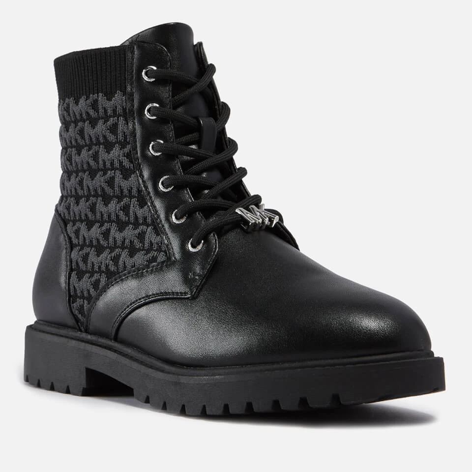 - Ribbed cotton sock, jacquard monogram, round laces, silver-tone hardware