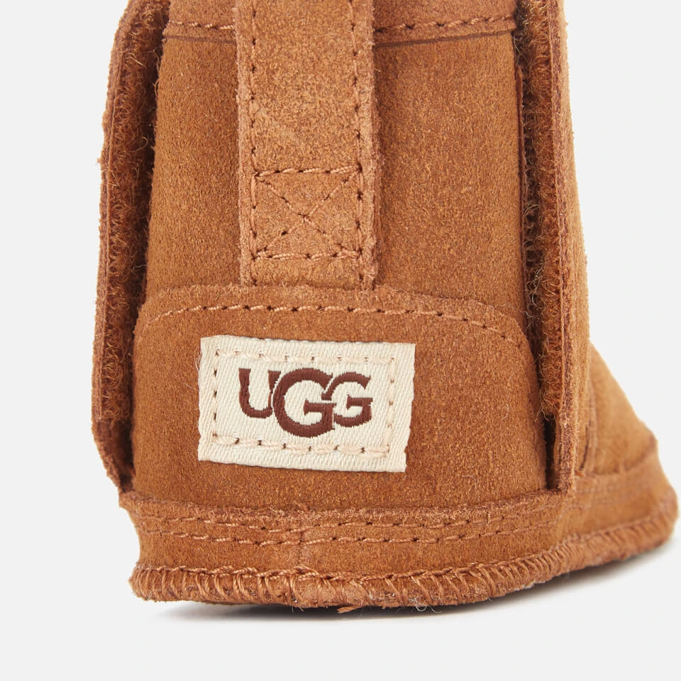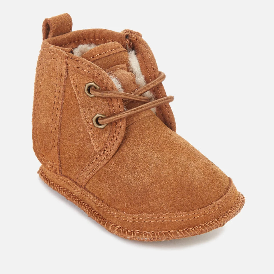 The perfect option for keeping tiny feet warm and cosy during the winter months, the UGG Babies’ Baby Neumel Boots in a classic chestnut brown will provide comfort and long-lasting wear for your little one. These Neumel Boots have been specially crafted with babies in mind, using a plush suede fabric for the upper and lined with an ultra-soft shearling. The fastenings of the boots are laces which means they can be adjusted as your child grows. At the back of the boot you will find the infamous UGG brand logo, carefully stitched onto a reinforced heel. The insole has been made from pure wool meaning that is incredibly cushioned and protective of small feet. The sole of the shoe is synthetic and has been embossed with a textured thread for amazing grip, perfect for those first steps.